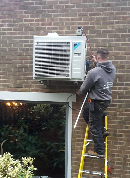 Replacing failed 20 year old air conditioning system with new Daikin Skyair R32 A++ energy rated system.