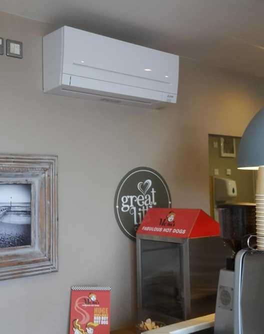 Mitsubishi Electric air conditioning installed in the new A-Head Of the Game Health kitchen & Cafe in Whitchurch, Cardiff. Call in for great coffee, quick bites, tasty treats and a fully stocked meal prep fridge. The A/C will provide the heating and cooling for this new exciting project that will be a great addition to Whitchurch.